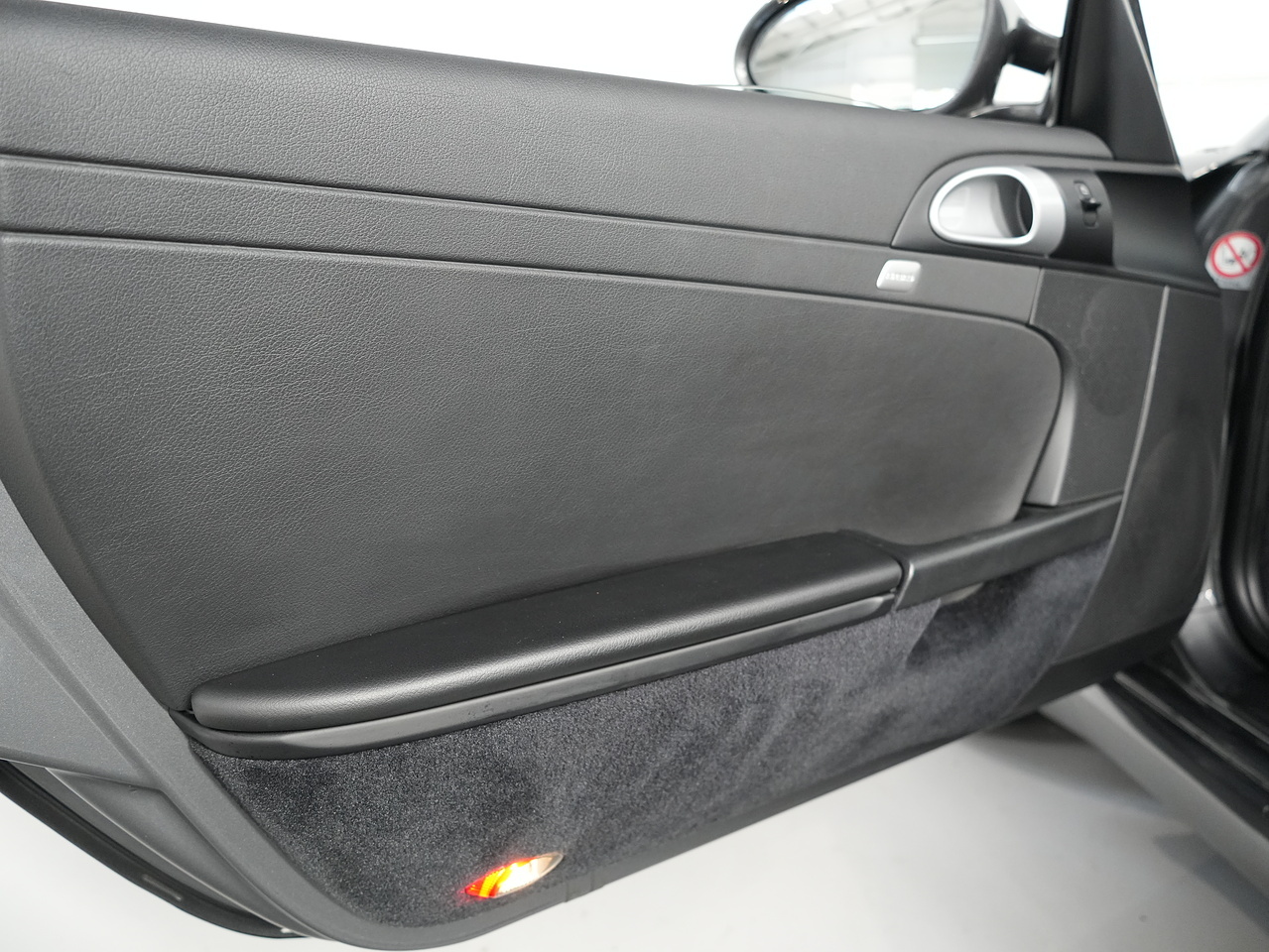 The interior of this Porsche is luxurious with leather upholstery and comes with standard features such as air conditioning, alloy wheels, anti-lock brakes, and power-assisted steering. Additionally, this car comes with optional specifications including a 6 CD autochanger, heated seats, and a wind deflector.